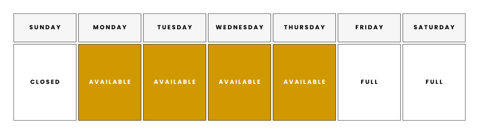 This calendar shows a quick snapshot of current availability. Click Schedule under Single Lesson to view the full calendar.
